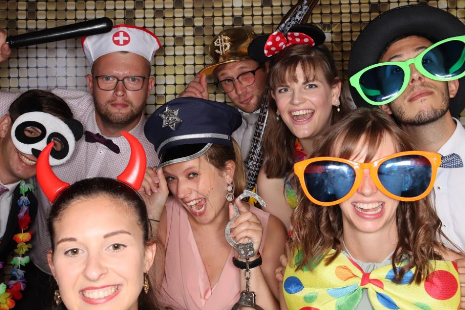 Verschiedene Requisiten wie Hüte, Mützen, Brillen und vieles mehr sorgen für echte Highlights. Halten Sie den gesamten Verlauf des Abends fest und bieten Sie Ihren Gästen einen echten Stimmungsmacher.